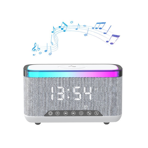 Best Seller 2025 6 en 1 multifunción carga rápida alarma Cock cargador inalámbrico altavoz con luz LED nocturna