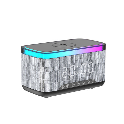 Nuevos productos Estación de carga inalámbrica digital de carga rápida de teléfono con altavoz y pantalla de tiempo